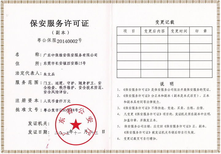 保安服務(wù)許可證正本