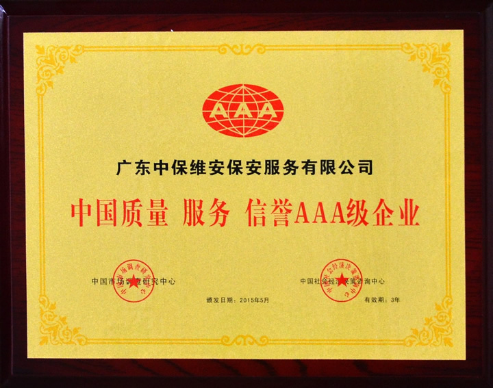 中國質(zhì)量 服務(wù) 信譽(yù)AAA級企業(yè)